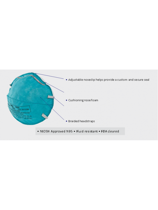 3M/N95 Particulate Respirator 1860 Mask NIOSH approved - CIF Price upon request, MQO 10 Million units.